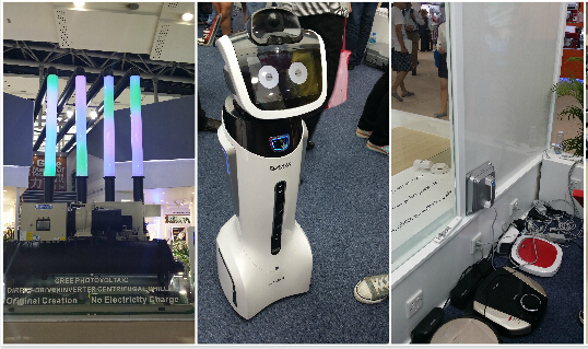 Powerful的格力空调系统;斯科沃超级“智能可爱”导购机器人和会爬墙的吸尘器;Smal的智能WiFi电水壶;九道的酿酒神器;海尔A plus plus冰箱里被顺走的apple(偷笑)。