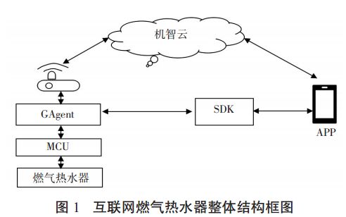 本方案针对国内燃气热水器主流机型,采用嵌入式技术和物联网 M2M 技术对传统燃气热水器进行升级改造,增设用户与热水器、热水器与云端互联互通的物联网络系统。本设计的物联网系统的信息中枢是物联网云平台[1]。互联网燃气热水器作为智能家居设备,其物联网云平台必须是具备强大的物联网节点支撑能力、可扩展性强和运维成本低等特点的云计算平台,机智云是国内最早的智能硬件自助开发和云服务平台, 是国内最大的物联网开发平台,拥有国内最大的物联网开发者社区,不仅能提供自主品牌的智能硬件模组,还支持其他硬件厂家的模组接入,能较好符合智能家居物联网云平台的设计要求。本文提出的整体设计方案是以机智云平台为系统控制枢纽,通过物联网控制模组与机智云平台利用手机 APP 进行数据通信,构建性能可靠、运行稳定的燃气热水器物联网控制系统,整体设计的结构框图见图 1 本方案选择机智云作为物联网云端服务平台基于三个考虑。一是机智云为开发者提供了自助式智能硬件开发工具与开放的云端服务,能通过模块化的工具、不断增强的 SDK 与 API 服务能力最大限度降低了物联网硬件开发的技术门槛,降低研发成本,缩短产品开发投产周期;二是机智云能提供稳定的、丰富的 SDK 应用开发包可供免费开源的 APP 调用,控制运维成本;三是机智云打造的开发者社区是物联网产品开发应用生态系统的重要组成部分,能推动产品快速迭代提升用户体验,有利于物联网智能家居产品互联网渗透率。综上所述,本方案产品选用机智云平台作为物联网云端服务平台,利用技术成熟性价比高的stm32 作为主控芯片,采用技术成熟的 ESP8266 作为WiFi 通讯芯片,构建性能强大、运维便捷可靠和拓展功能丰富的燃气热水器物联网控制模组。