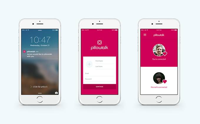 分隔异地的两个人分别携带这样的一套设备,通过APP应用,便能分享彼此的心跳声了,伴随爱人的心跳声入睡,这就是Pillow Talk所做的。