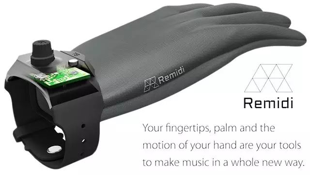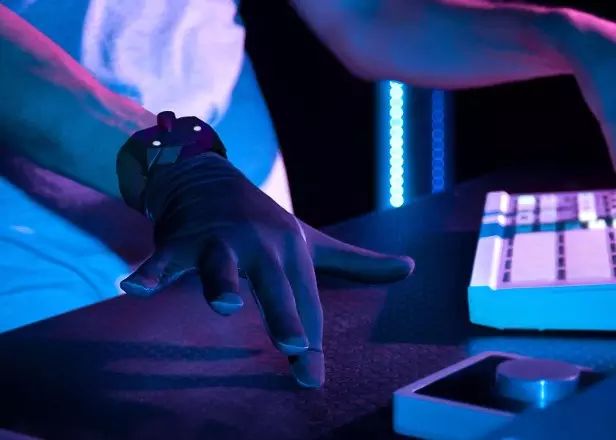 从外观上来看,这款RemidiT8与传统的手套并没有太大的差异。稍微与众不同的是,在手腕处配有能够进行磁性连接的控制设备,能够与相应的编曲软件进行连接。