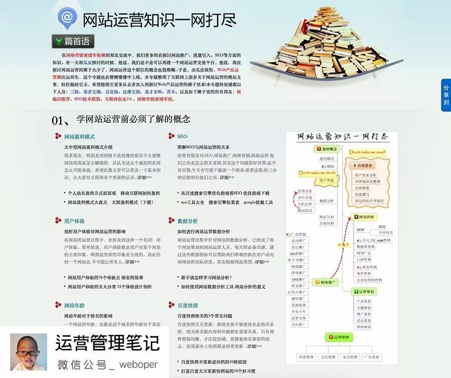 网站运营108将承载了我很多心血。举办沙龙的过程中,没有主持人,我跪求老婆出山,没有前台接待员工,我恳请踢球的朋友帮忙,在QQ群里,事无巨细的回答网友的提问并拿出仅有的幽默感维持社区秩序。然后便是举办各种街头足球赛、篮球赛等活动。 那个时候,没有战略规划和数据驱动,一切跟着运营的感觉走,外加点点主动权,所以做起来也还算“九州生气恃风雷”。当时的主要运作思路现在总结起来却还是有点战术搭配的意思呢(运营人的第六感其实就是心在用户处): 一个专题翘出种子用户 – 线上线下活动策划+内容建设留存用户 – 软文+电子书铺路挖掘新用户 – 网站运营108将活动贯穿始终,用户落地转化 简单的描述: 网站运营知识一网打尽专题的策划效果完全被油炸了出来,其最关键的是专题内嵌入了一个网站运营知识一网打尽思维导图,这幅导图在微博上因为炳叔的一个推荐而得到疯狂的转发,从而引入了一批核心用户进来。 这个专题带动了整个社区的起步。于是,基于这次专题策划的成功,又接连策划了10个同类专题(内容建设);社区上的活动可谓琳琅满目:线上征文,转发有奖,线下足球篮球赛、沙龙、聚会等。活动的策划为各种推广活动积累了充足的物料。渠道拉新上,运用软文推广渠道,无大规模的行动,只靠我博客里最早的几篇软文(链接诱饵)以及策划的几份文档等,然后每天都有新用户进来;后来,想寻找一个噱头将这些用户转化落地(吃终生),就组建了一个10个交流群。这样,用户增强了粘性 。 2、如何找到目标用户需要的内容如果我们知道产品绝大多数用户最喜欢什么内容,那么我们就可以基于主流用户的兴趣点来制作内容,引导编辑团队、作者团队、甚至于UGC内容的生产者们去强化这些内容的输出,也能有效避免做了很多用户不喜欢的内容而浪费掉资源。 所以,研究用户对产品内容的期望和兴趣爱好至关重要。一来满足用户预期,二来降低成本,减少内耗。 一般来说,我曾沿用过以下四种方法来分析用户兴趣爱好: 流量分析法比如在频道运营上,哪个频道的UV、PV、平均停留时间最高,这些都是很简单就能从监控工具中挖掘出来的。通过这些数据,就可以分析出用户对内容访问的偏好,然后围绕这些偏好去优化内容建设的方向和思路。 一般情况下,我们做用户分析,只能通过用户的行为、访问方式等去理解用户。但是,其实了解用户的心理状态、兴趣走向其实更重要,这时候,内容分析就能了解用户心理。 比如,用户每天都在看什么内容,他的目的是什么,对我们提供的内容感觉怎么样? 流量分析法是我最长用的方法,在我的书《运营实战指南》第9章试错一节有详细介绍。 用户票决法用户票决,是一种定量分析方法。根据用户对你的文章的点评、引用、点赞、转发等行为来判断究竟哪些文章是用户喜欢的。 举一个很典型的例子: 唐诗宋词,据统计流传至今的有7万多首,那么这么多的诗词,究竟哪些是经典名篇呢。哪些是大众共识的好作品。一些学者利用互联网技术来挖掘当今用户最关注的一些诗词。拿宋词举例: 下图为评判标准: