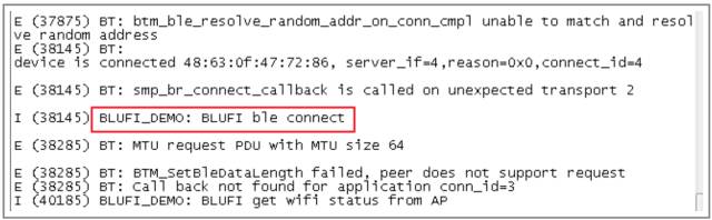 同时,串口工具中显示如下打印: 根据以上示例,就可以通过 ESP-32S 进行蓝牙配网啦!