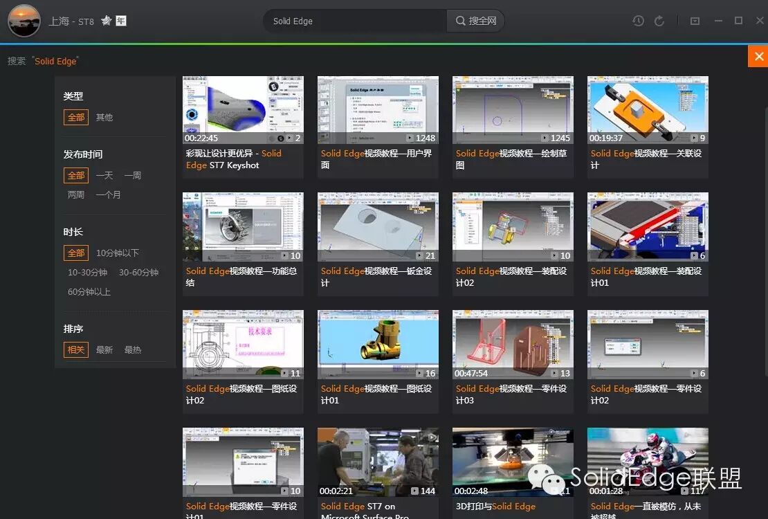 另外,友情提醒:在腾讯视频网,你只要按关键字“Solid Edge”搜寻,就能找到十多个Solid Edge的视频教程,请看: